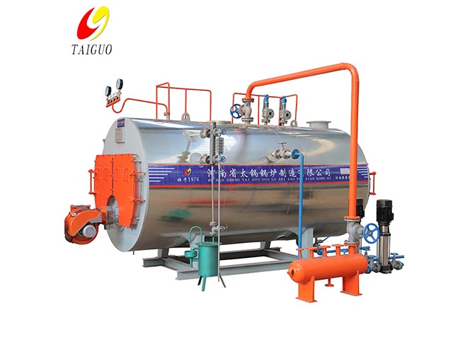 1、燃油(氣)鍋爐本體設(shè)計為全濕背式三回程煙火管結(jié)構(gòu)、火焰在燃燒室內(nèi)微正壓燃燒、燃燒充分、爐膛熱負荷低、氮氧化合物排放量少。 2、燃油(氣)鍋爐采用波形爐膽及螺紋煙管結(jié)構(gòu)、既提高了強度又強化了傳熱效果。 3、燃油(氣)鍋爐水容積及蒸汽儲存空間大、負荷調(diào)節(jié)范圍大。合理的爐內(nèi)裝置、保證了蒸汽品質(zhì)。 4、燃油(氣)鍋爐采用了新型隔熱保溫材料、重量輕、保溫性能好。 5、燃油(氣)鍋爐水位控制器采用不銹鋼作為電極棒、聚四氟乙烯作為絕緣材料、性能可靠、使用壽命長。 6、燃油(氣)鍋爐前后煙箱為鉸鏈連接、檢修維護方便快捷。
